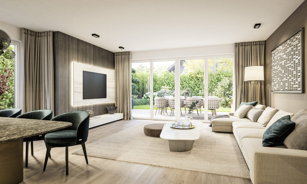 Die geschmackvolle Farbgebung und ein hochwertiges Materialkonzept unterstreichen den Anspruch an Langlebigkeit und Stil. Helle Räume schaffen angenehme Atmosphäre – geschaffen für ein Wohngefühl, das Ruhe und Wertigkeit vermittelt.