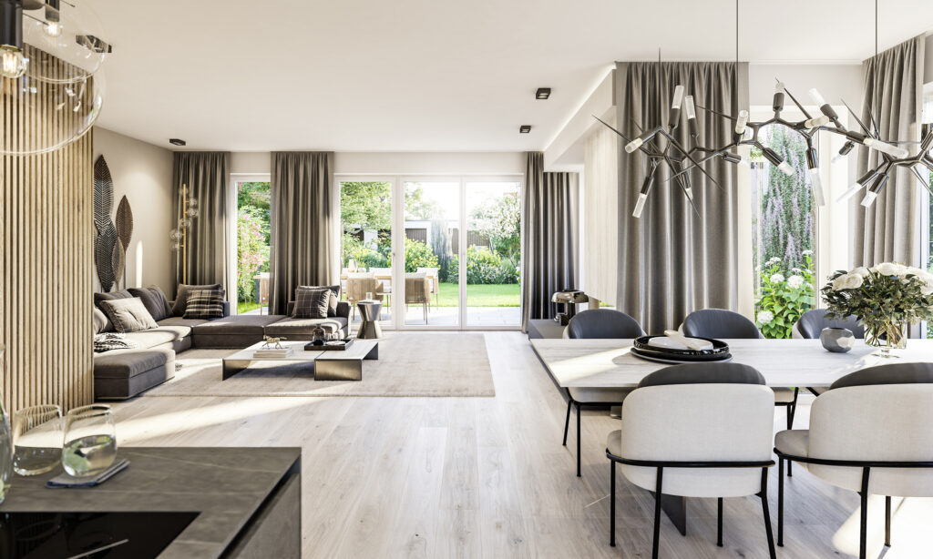 Hochwertige Materialien und durchdachte Technik verschmelzen zu einem Wohnerlebnis, das keine Wünsche offenlässt.