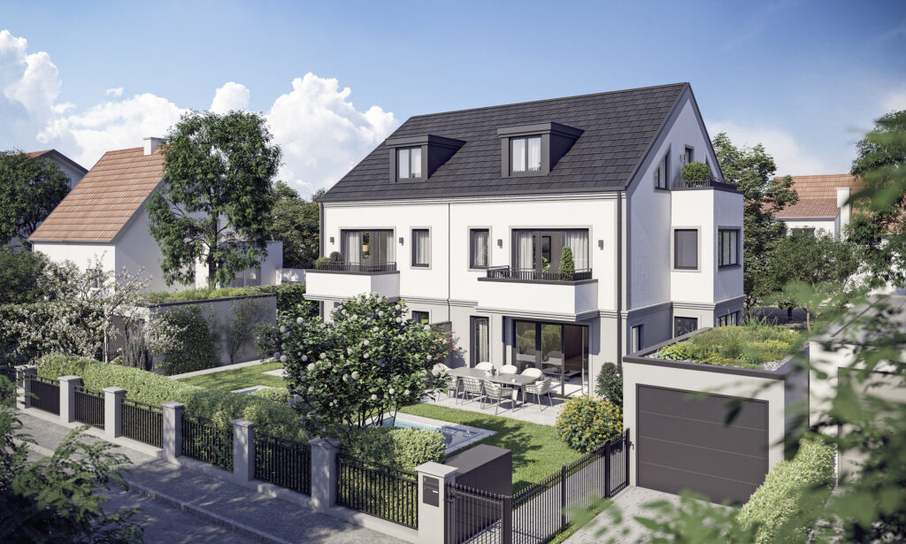 50% VERKAUFT: Dorfgrabenweg 8 – ein Ort, an dem sich urbanes Leben und naturnahe Ruhe auf außergewöhnliche Weise ergänzen. In einem gewachsenen Wohnumfeld von München-Freimann entstehen zwei neue Villenhälften, die stilvollen Wohngenuss mit einem entspannten Lebensrhythmus verbinden.