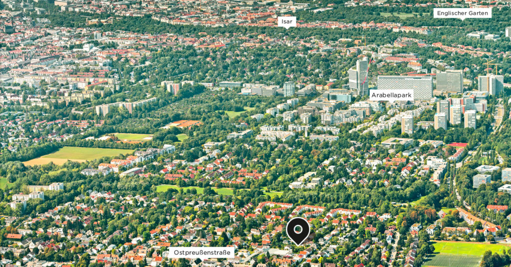 Bogenhausen-Denning gehört zu den besonders geschätzten Wohnquartieren im Münchner Osten. Gepflegte Nachbarschaften, großzügige Grünflächen und eine gewachsene Infrastruktur prägen das Umfeld. Die Umgebung bietet eine hohe Lebensqualität: Parkanlagen, Einkaufsmöglichkeiten und eine gute Verkehrsanbindung liegen nur wenige Minuten entfernt.