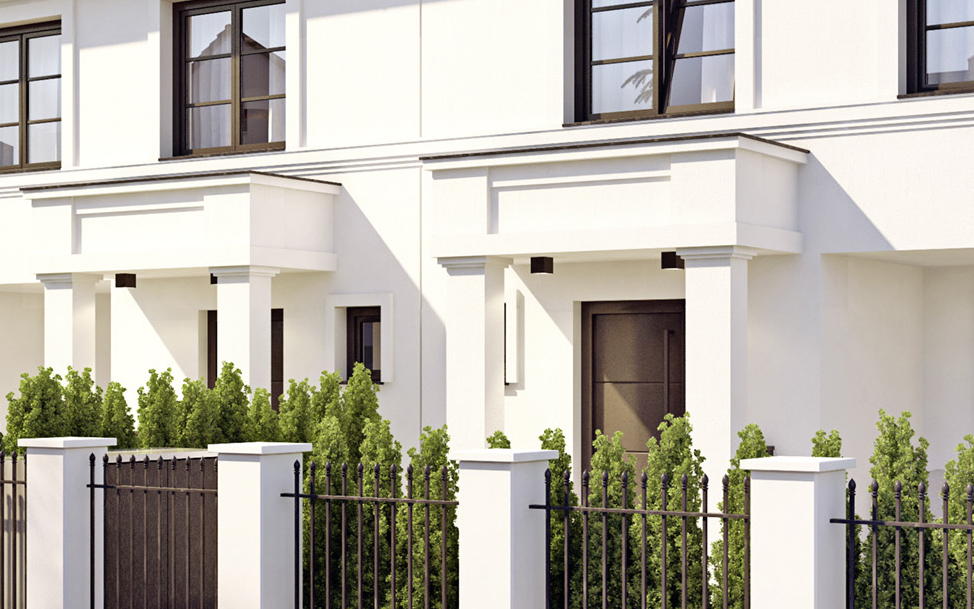 Sprossenfenster, repräsentative Eingangsbereiche und eine harmonische Farbgebung runden das Gesamtbild ab. Das Ergebnis ist eine Architektur, die dauerhaft überzeugt – stilvoll, hochwertig und klar in ihrer Formensprache.