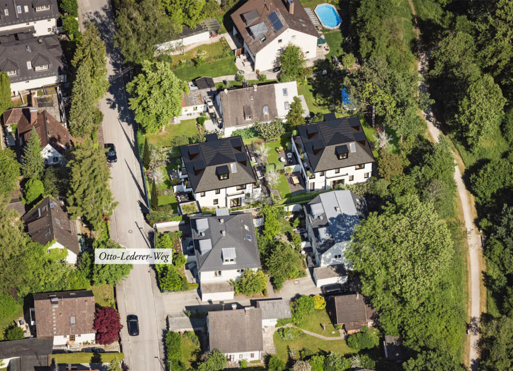 Im Otto-Lederer-Weg 49 entstehen vier elegante Villenhälften, die anspruchsvolle Architektur, hochwertige Ausstattung und gut geschnittene Grundrisse miteinander verbinden.