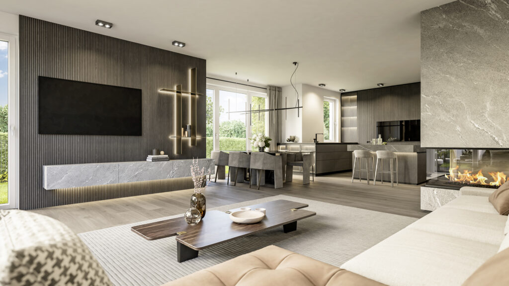 Hochwertige Materialien und durchdachte Technik verschmelzen zu einem Wohnerlebnis, das keine Wünsche offenlässt.
