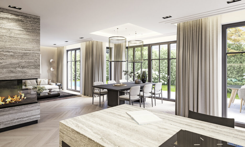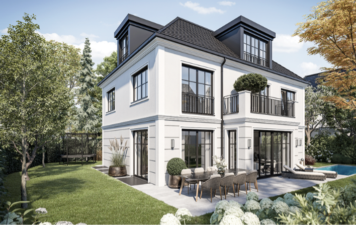 Die Architektur verbindet traditionelle Ästhetik mit moderner Klarheit. Großzügige Fensterflächen, harmonische Farben, stilvolle Faschenverzierungen und ein sorgfältig abgestimmtes Materialkonzept verleihen dem Haus eine wertige und zugleich einladende Ausstrahlung. Jeder Raum ist darauf ausgelegt, Licht, Funktionalität und Atmosphäre miteinander zu vereinen – für ein Wohngefühl, das jeden Tag besonders macht.