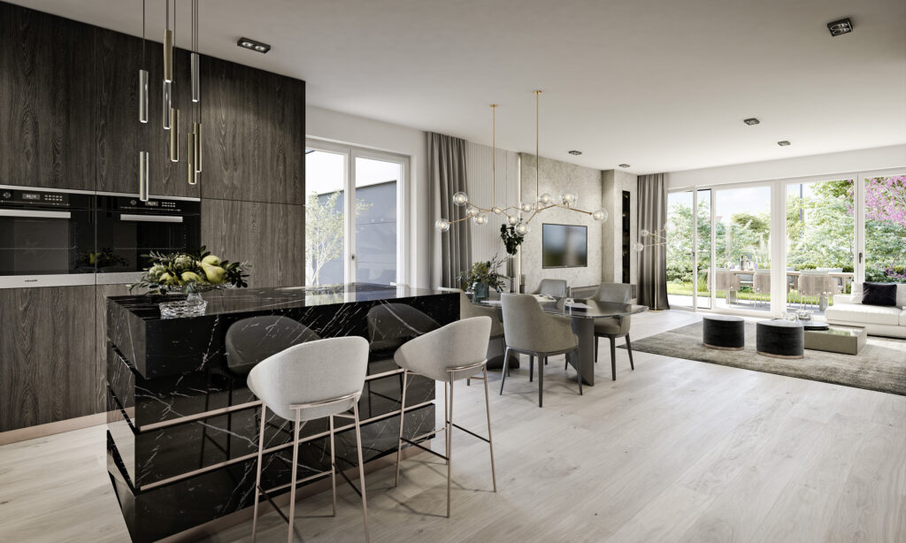 Hochwertige Materialien und durchdachte Technik verschmelzen zu einem Wohnerlebnis, das keine Wünsche offenlässt.